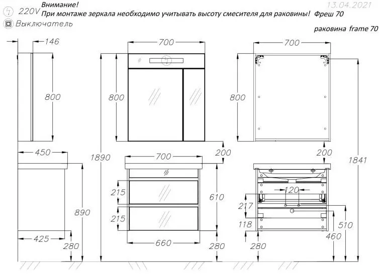 Характеристики товара Шкаф-зеркало Opadiris Фреш 70 белый 00-00005554