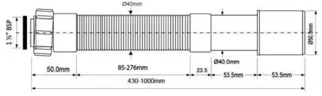 Характеристики товара Слив гофрированный Mc Alpine 1½x50мм L=430-1100мм MRMF6