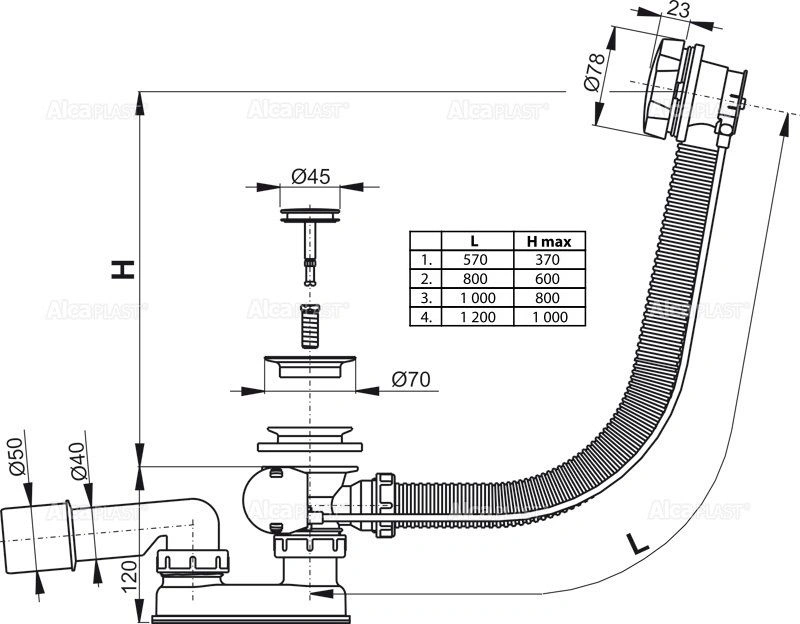 Диаметр слива в канализацию40, 50 мм
