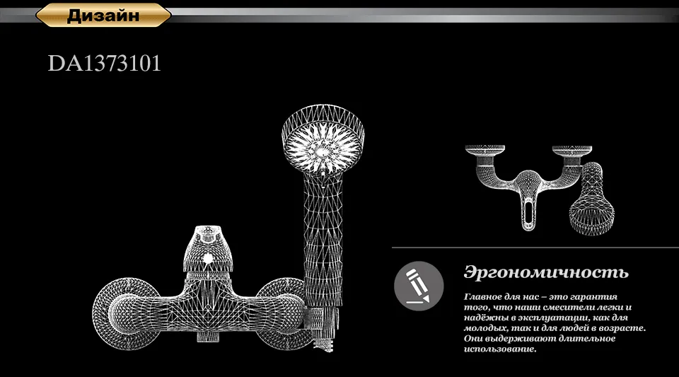 ДОПОЛНИТЕЛЬНАЯ ИНФОРМАЦИЯсмеситель, эксцентрики-2шт., декоративная шайба (отражатель)-2шт., шланг душевой, лейка душевая-3 режима, держатель душевой лейки, паспорт, брендовая сумка.