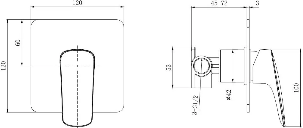 КОМПЛЕКТАЦИЯ1. Смеситель (внешняя и скрытая часть) 2. Декоративная накладка на стену из нержавеющей стали