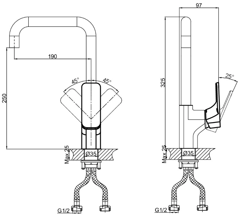 Высота излива25 см