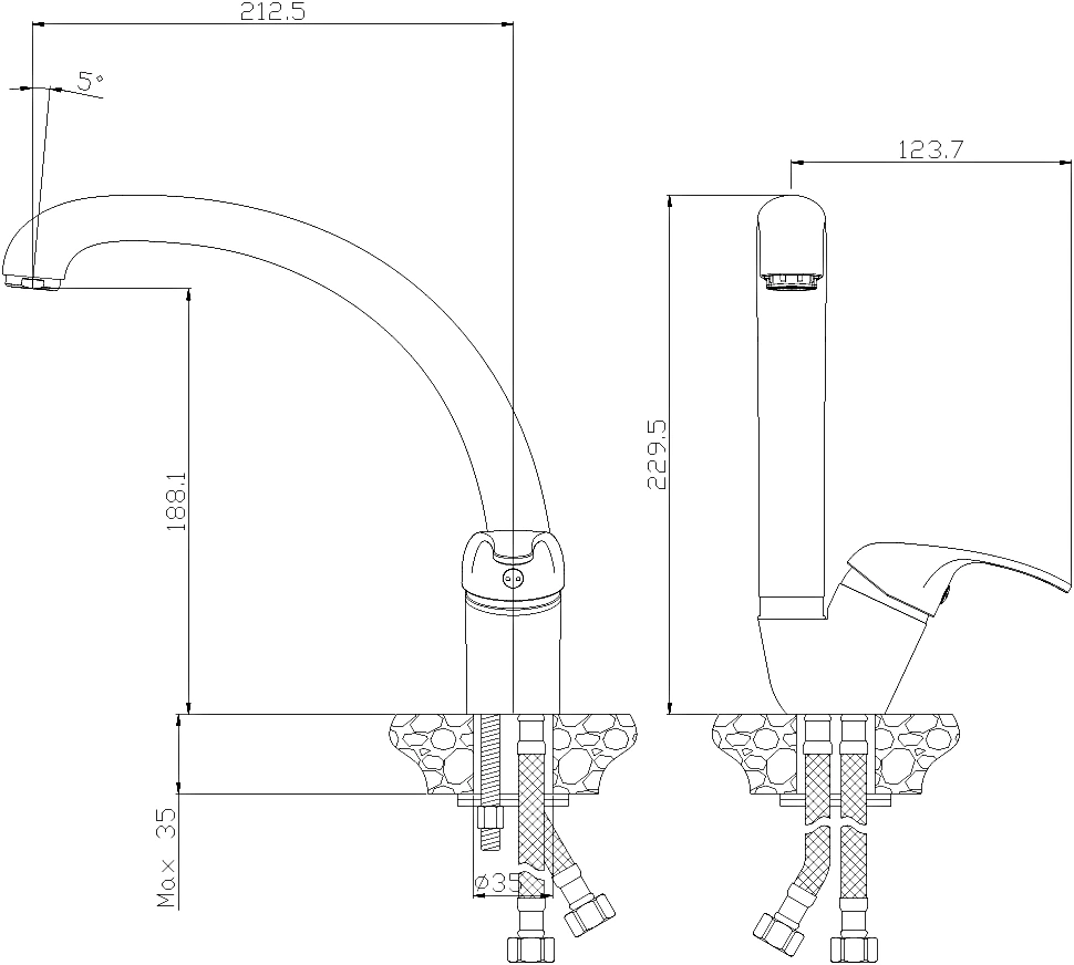 КОМПЛЕКТАЦИЯкрепления, аэратор, гибкая подводка