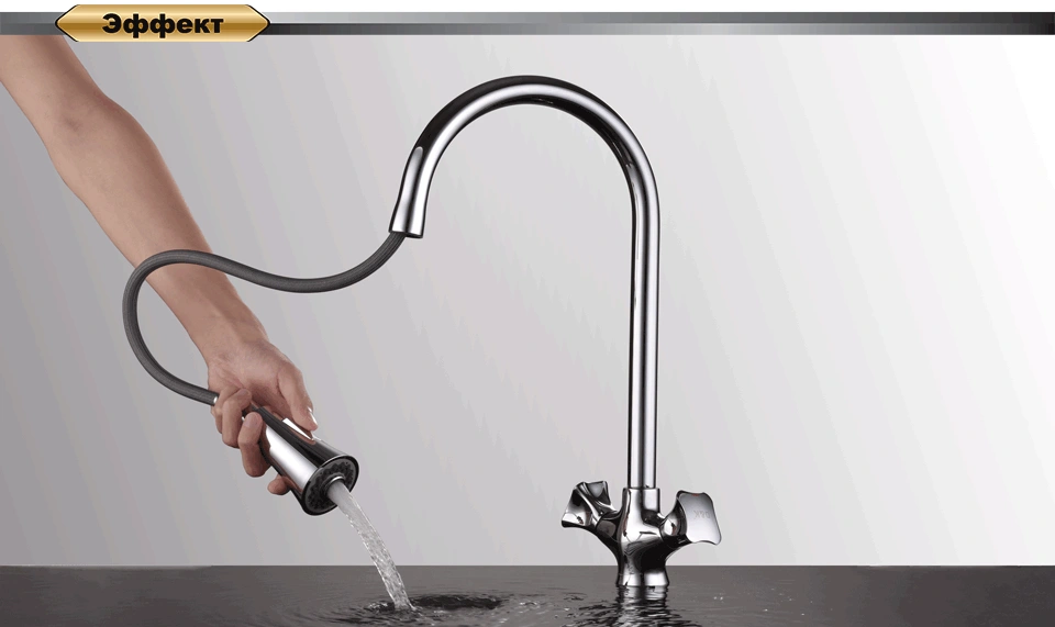 Характеристики товара Смеситель для кухни с выдвижным изливом D&K Hessen Grimm хром DA1382501