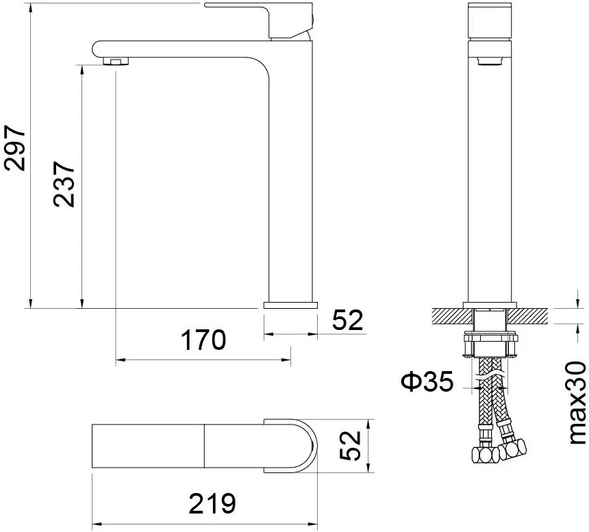 КОМПЛЕКТАЦИЯ1. Смеситель 2. Гибкая подводка 60см 3. Монтажный комплект 4. Слив-перелив и донный клапан в комплект не входят