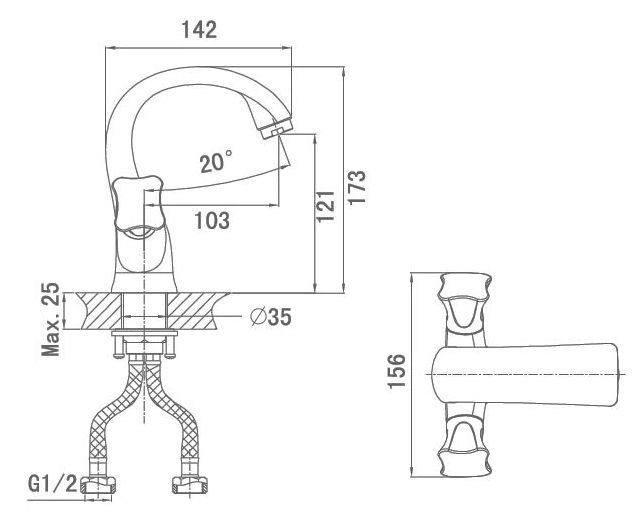 Характеристики товара Смеситель для раковины D&K Grimm Hessen хром DA1382101