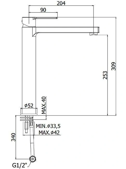 Высота излива25.3 см