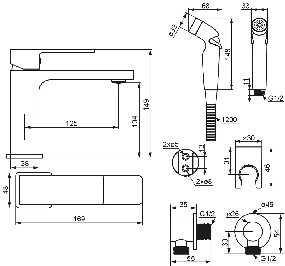 КОМПЛЕКТАЦИЯсмеситель, гигиеническая лейка, держатель, шланг, гибкая подводка, набор креплений, инструкция
