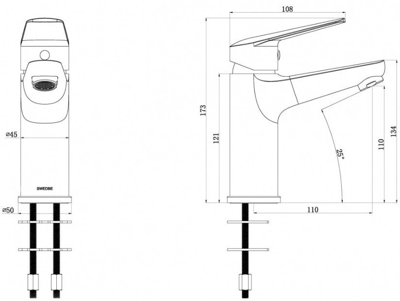 Характеристики товара Смеситель для раковины Swedbe Ares хром 1910