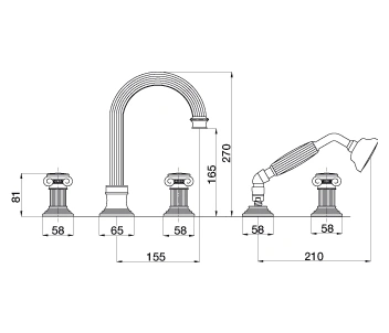 Характеристики товара Смеситель на борт ванны на 5 отверстий Cezares Olimp бронза OLIMP-BVD-02-O