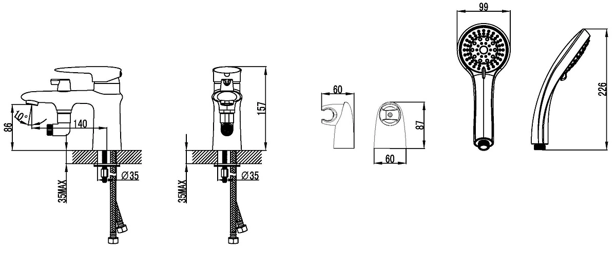 КОМПЛЕКТАЦИЯдушевой шланг, душевая лейка, дивертор, крепления