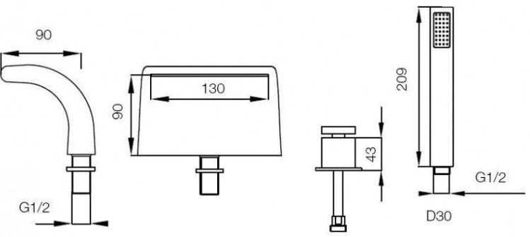 Характеристики товара Смеситель на борт ванны на 4 отверстия Vega Onda хром 91А1715125
