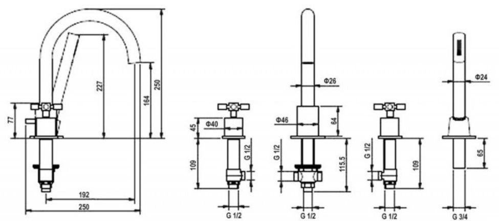 Характеристики товара Смеситель на борт ванны на 4 отверстия Vega Spacio хром SP280CR50