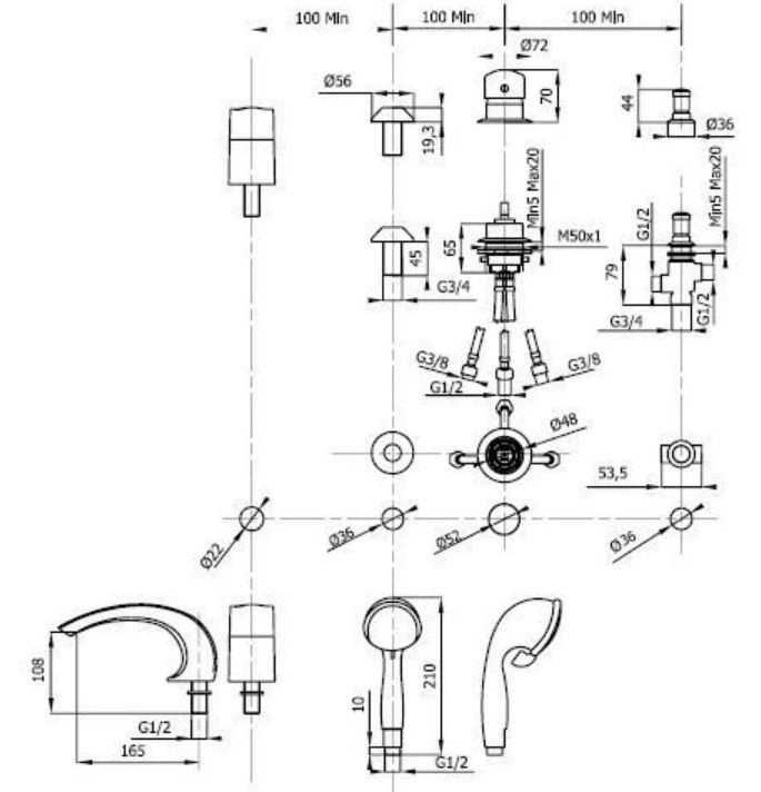 Характеристики товара Смеситель на борт ванны на 5 отверстий Vega Arco Lux хром 91А0202025