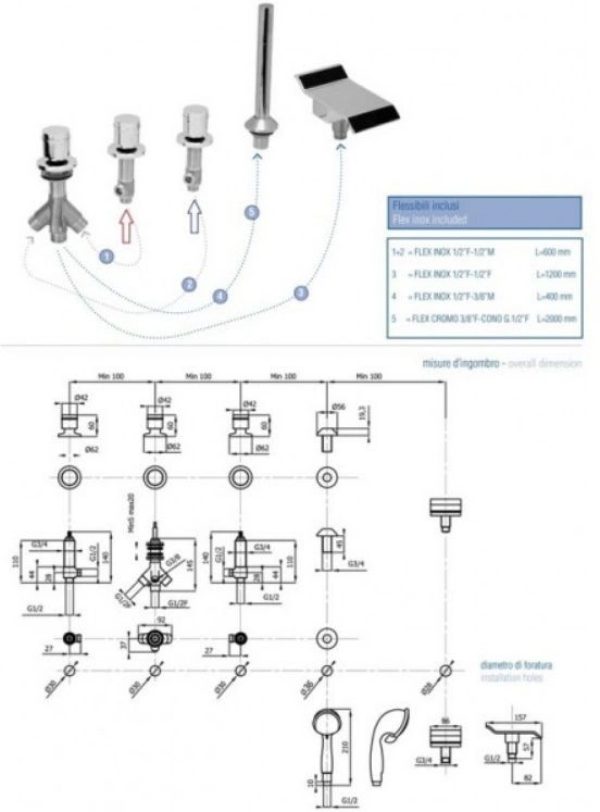 Характеристики товара Смеситель на борт ванны на 5 отверстий Vega Piccolo хром 91А0155022