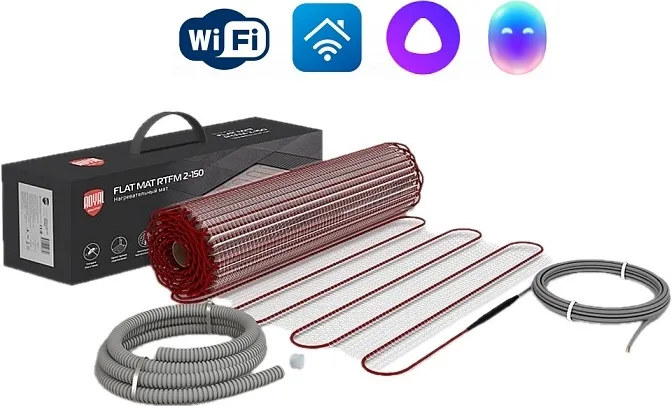 КОМПЛЕКТАЦИЯнагревательный мат, гофрированная труба, заглушка гофрированной трубы, монтажная лента, паспорт, инструкция по установке и эксплуатации, гарантийный талон