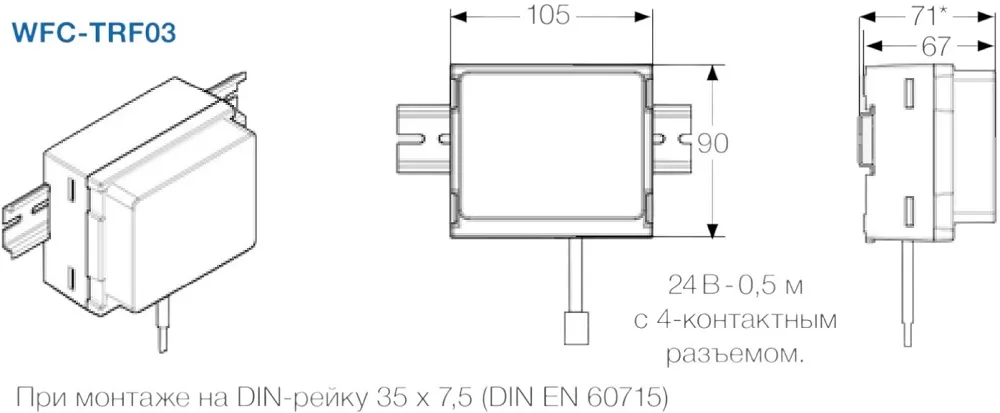 TRF03 230/24 - подключение к контроллеру 4-проводный кабель