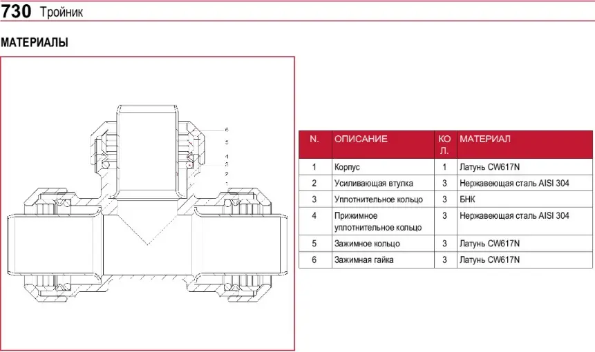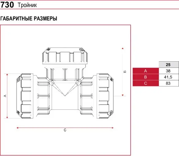Характеристики товара Тройник компрессионный соединительный 25мм x 25мм x 25мм Itap 7300034025