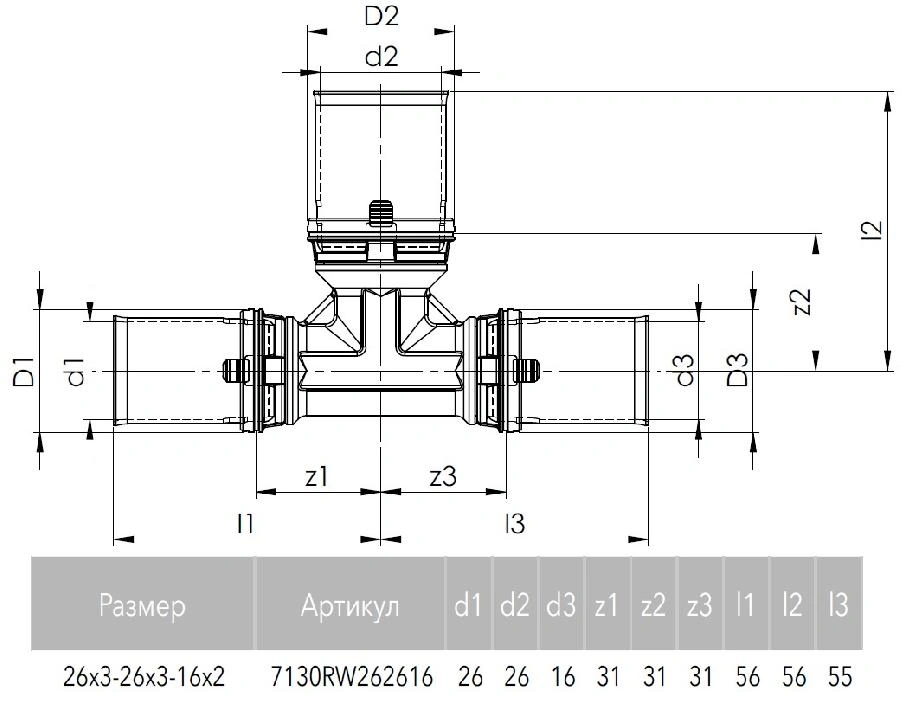 Характеристики товара Тройник пресс редукционный 26мм x 26мм x 16мм Comap MultiSkin 7130RW262616