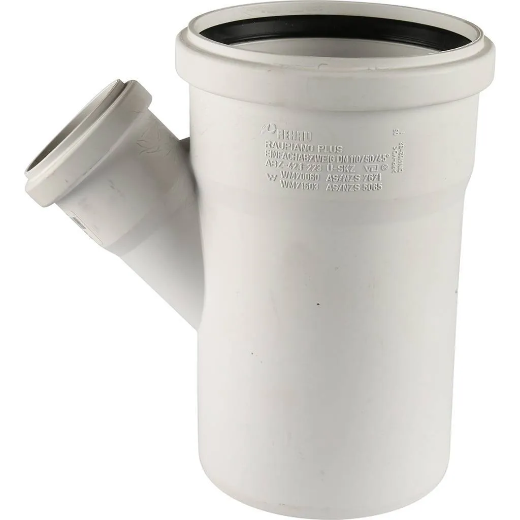 Тройник внутренний бесшумный D=110x50мм Угол 45° Rehau Raupiano Plus 11213041001