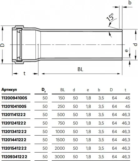 Характеристики товара Труба канализационная внутренняя бесшумная D=50мм L=1000мм Rehau Raupiano Plus 11201341222