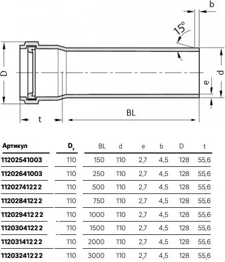 Характеристики товара Труба канализационная внутренняя бесшумная D=110мм L=500мм Rehau Raupiano Plus 11202741222