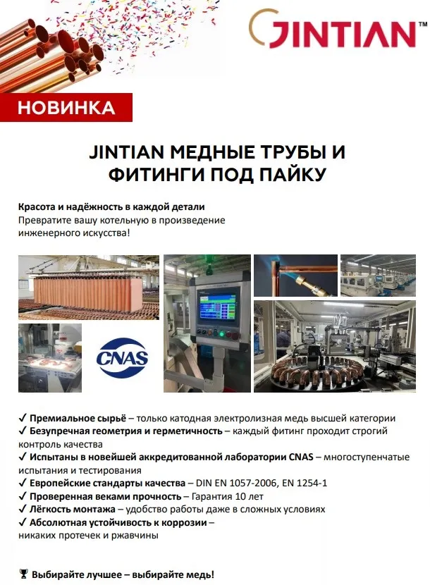 Характеристики товара Труба медная неотожженная JINTIAN 28 x 1.0 мм штанга 2.5м JT280010025