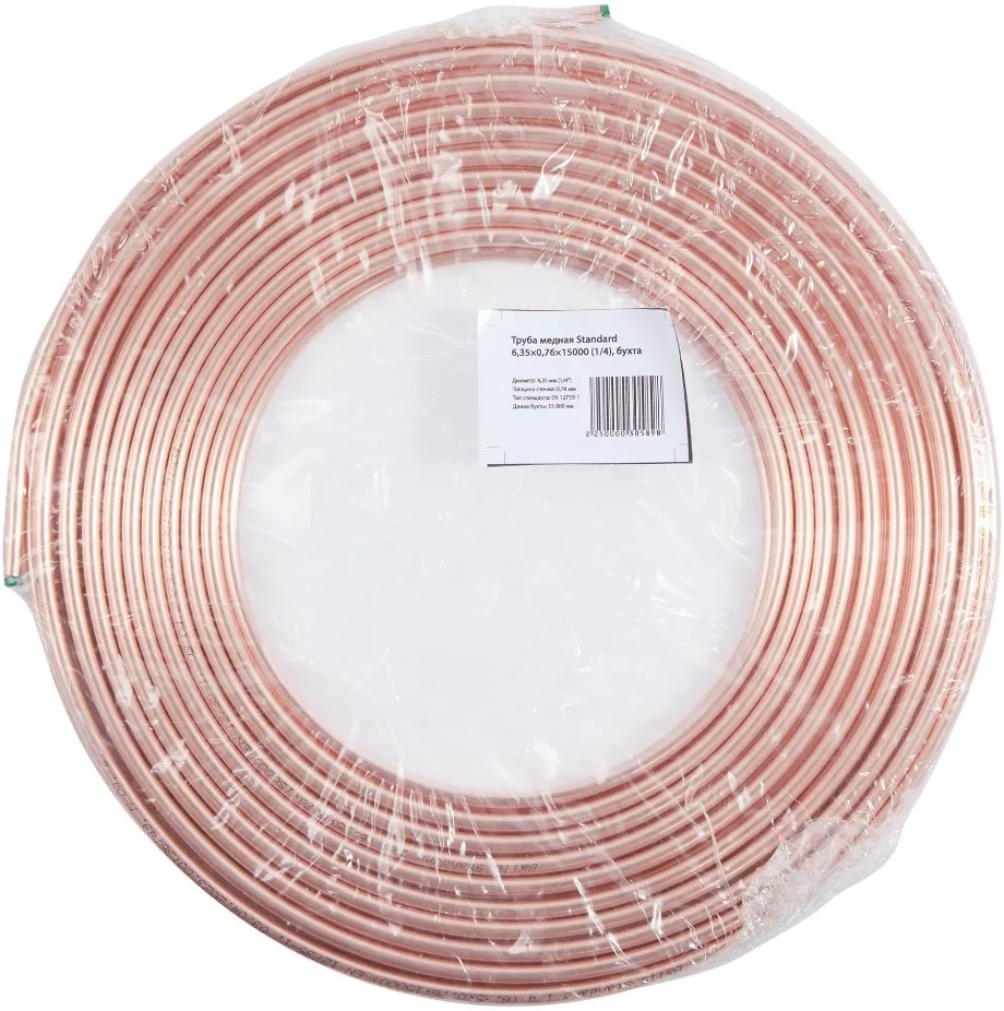 Труба медная отожженная Standard ¼" 6,35 x 0,76 мм бухта 15м