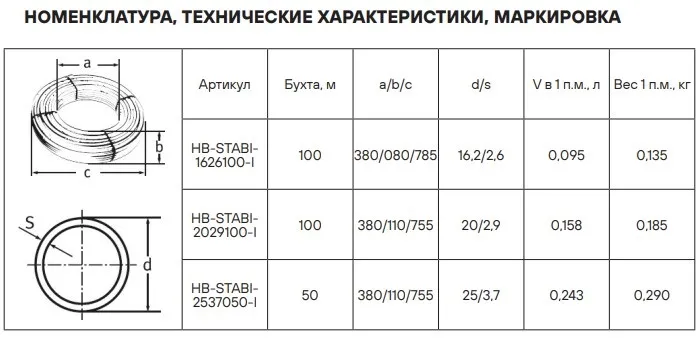 Характеристики товара Труба металлополимерная Hoobs Stabil 20 x 2.9мм PE-Xc/AL/PE-Xс HB-STABI-2029100-I