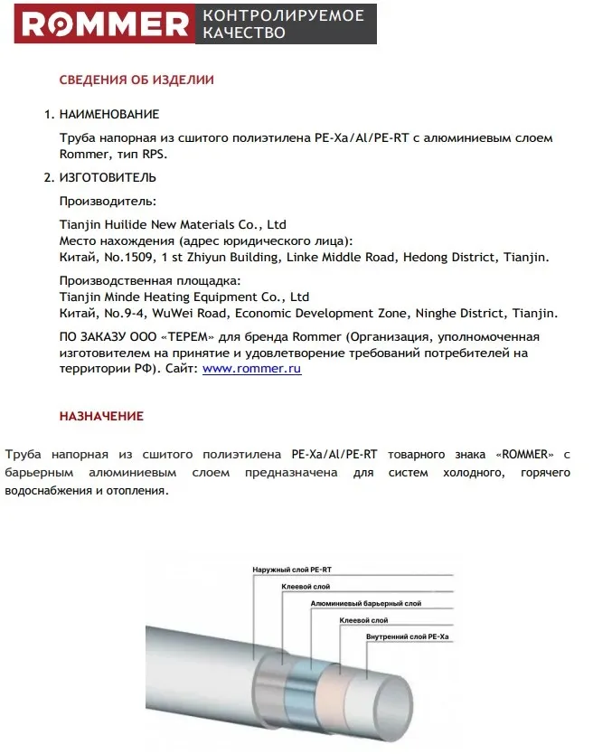 Назначениевысокотемпературные радиаторы, горячее водоснабжение, напольное отопление, низкотемпературные радиаторы, отопление, холодное водоснабжение