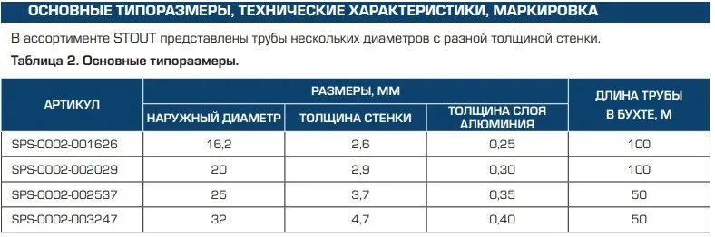Характеристики товара Труба металлополимерная Stout Stabil 32 x 4.7мм PE-Xa/AL/PE-RT SPS-0002-003247