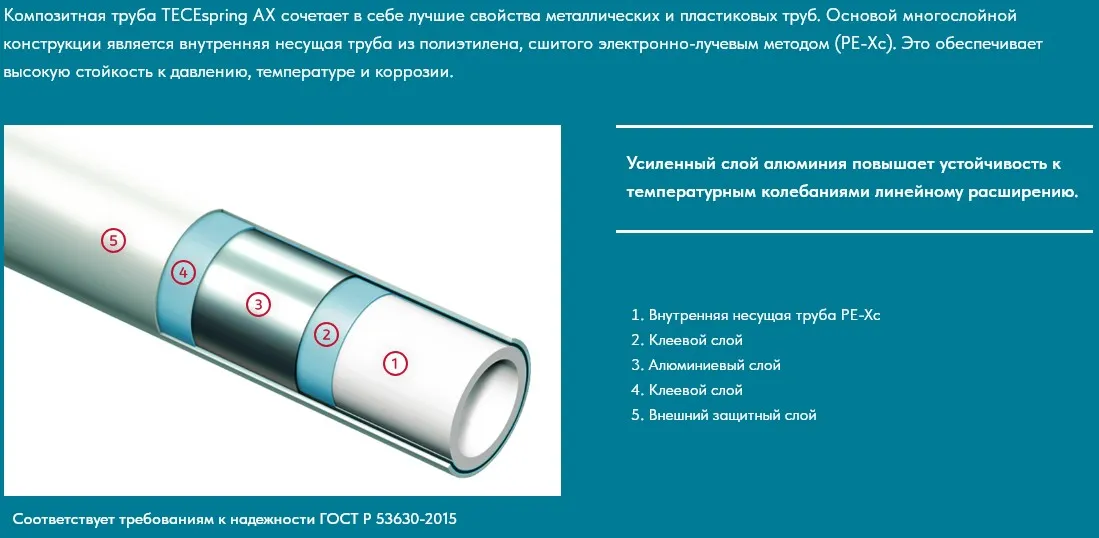 Характеристики товара Труба металлополимерная TECEspring AX 16 x 2.75 мм PE-Xc/AL/PE-RT бухта 100м 732016S