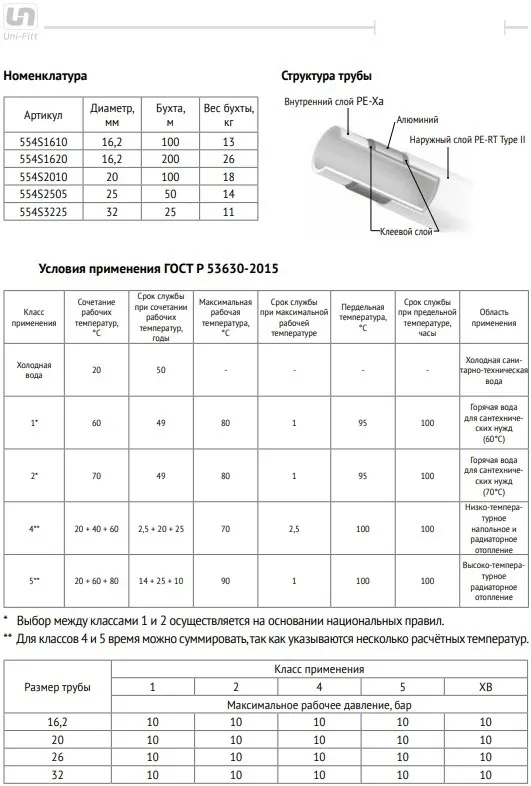 Характеристики товара Труба металлополимерная Uni-fitt Strong series 16 x 2.2мм PE-Xa/Al/PE-RT 554S1610