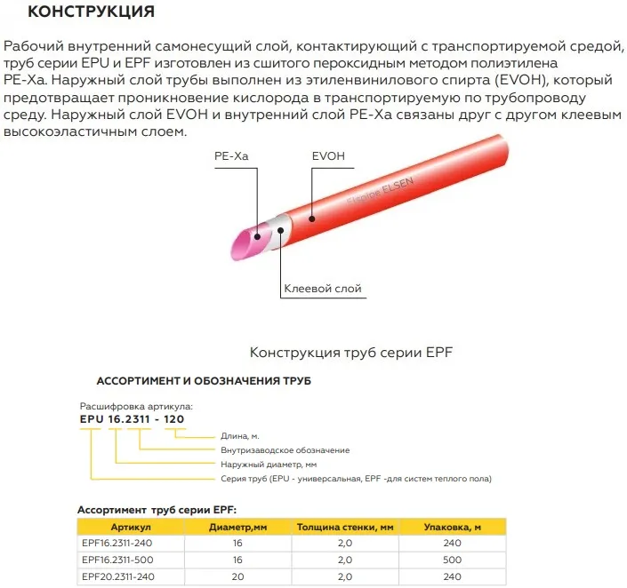 Характеристики товара Труба сшитый полиэтилен Elsen Elspipe 16 x 2.0 мм PE-Xa EVOH бухта 500м EPF16.2311-500