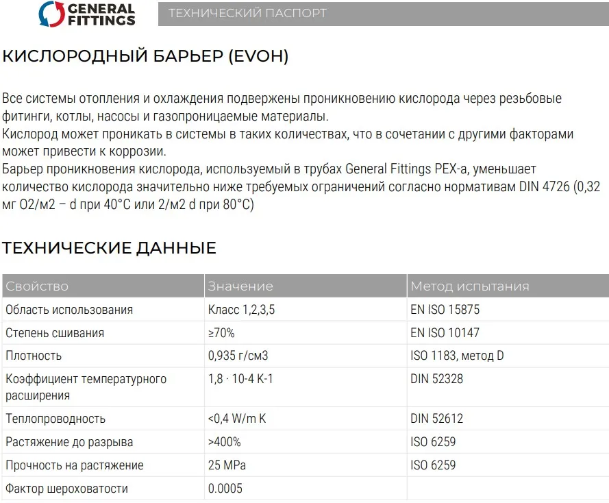 Характеристики товара Труба сшитый полиэтилен General Fittings 16 x 2.2мм PE-Xa EVOH TB0030G162200B
