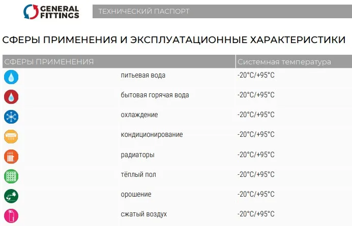 Назначениегорячее водоснабжение, напольное отопление, низкотемпературные радиаторы, отопление, холодное водоснабжение