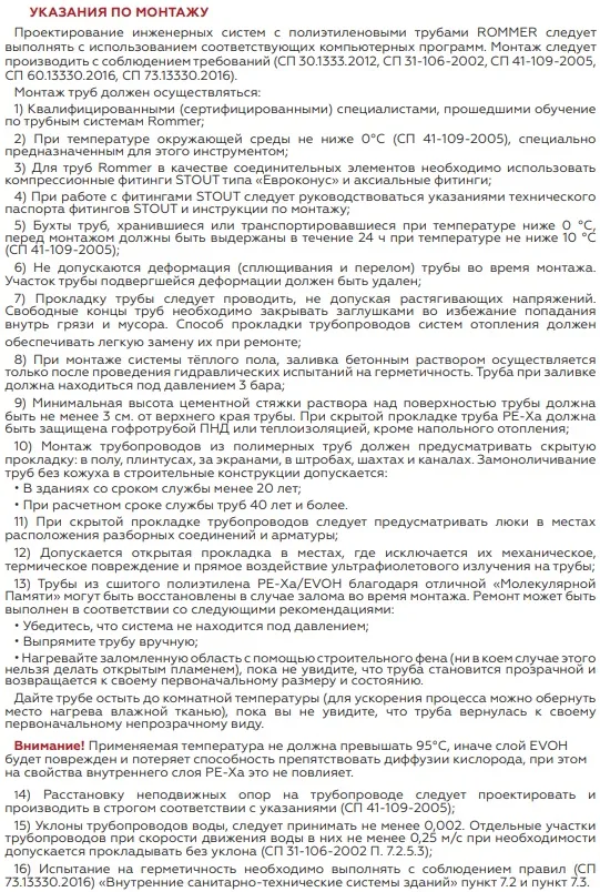 Характеристики товара Труба сшитый полиэтилен Rommer 16 x 2.0 мм PE-Xa EVOH бухта 100м RPX-0002-101620