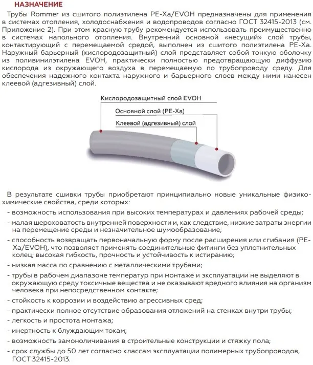 Характеристики товара Труба сшитый полиэтилен Rommer 20 x 2.0 мм PE-Xa EVOH бухта 100м RPX-0002-002020