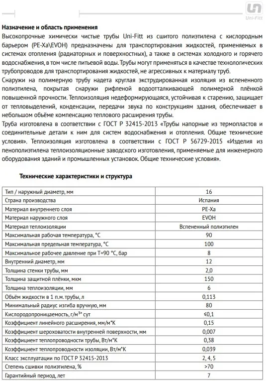 Характеристики товара Труба сшитый полиэтилен в теплоизоляции Uni-fitt 16 x 2.2 мм PE-Xa EVOH 6мм красная бухта 100м 564R1610