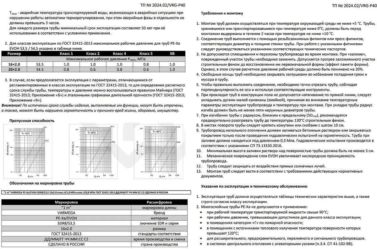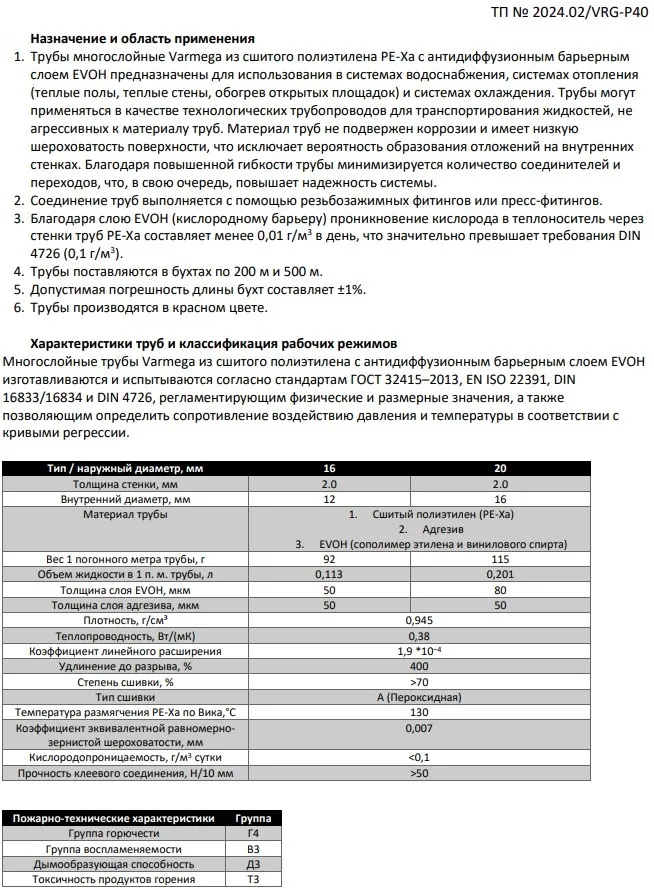 Характеристики товара Труба сшитый полиэтилен VARMEGA 16 x 2.0 мм PE-Xa EVOH бухта 200м VM30701