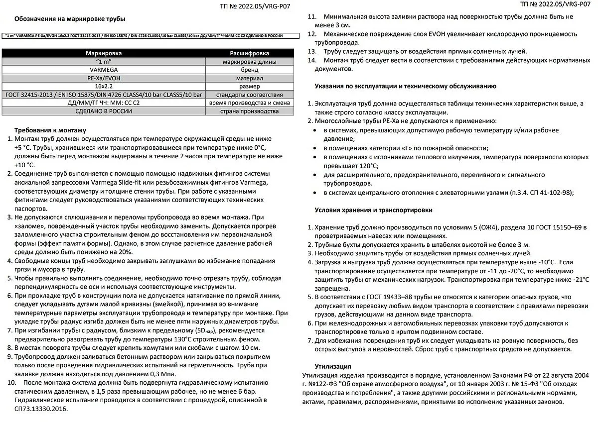 МатериалPE-Xa EVOH