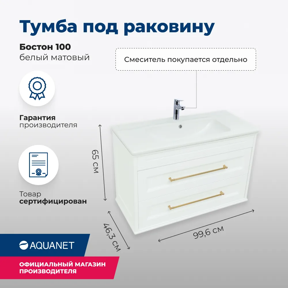 Характеристики товара Тумба под умывальник Aquanet Бостон М 100 белый матовый 00243781
