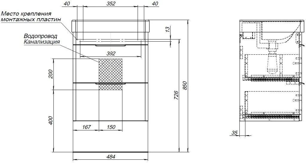 Характеристики товара Тумба под умывальник Aquanet Ирис new 50 белый глянец 00310143