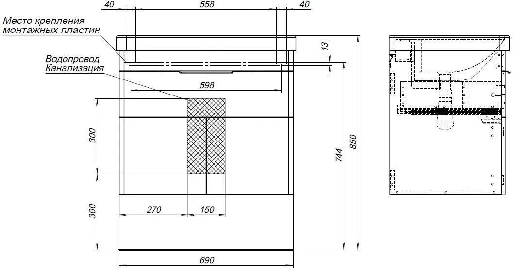 Характеристики товара Тумба под умывальник Aquanet Ирис new 71 белый глянец 00310149