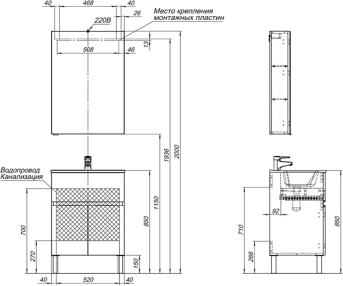 Характеристики товара Тумба под умывальник напольная Aquanet Алвита New 60 дуб веллингтон 00277549