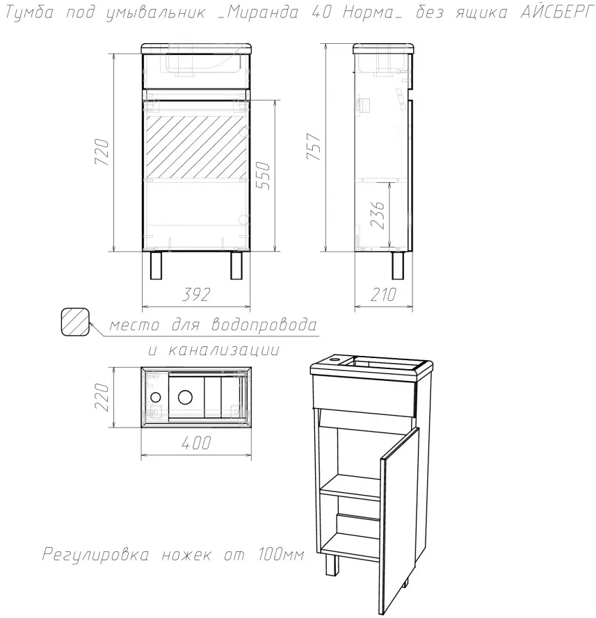 Тумба под умывальник напольная Айсберг Миранда 40 белый DA1616T