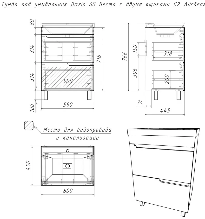Характеристики товара Тумба под умывальник напольная Айсберг Веста 60 белый DV5911T