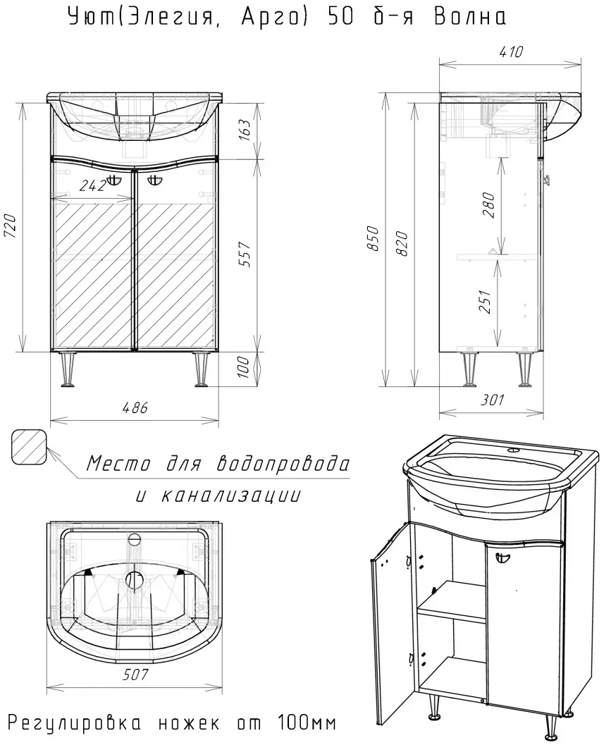 Характеристики товара Тумба под умывальник напольная Айсберг Волна 50 белый DA1012T