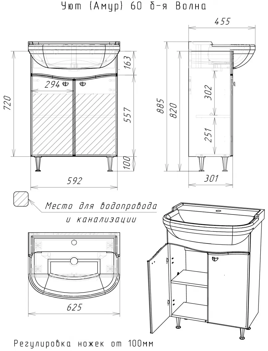 Характеристики товара Тумба под умывальник напольная Айсберг Волна 60 белый DA1020T