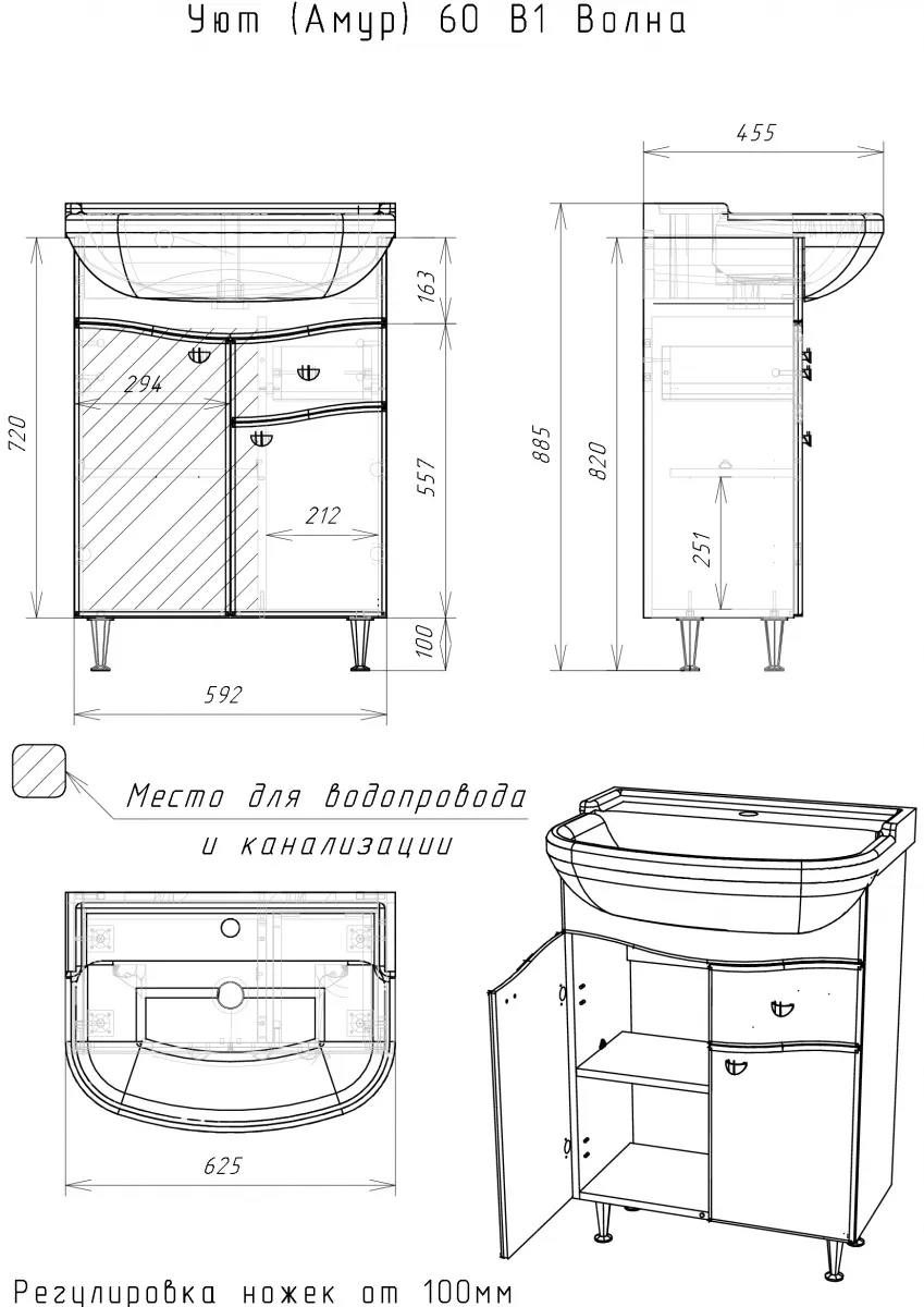 Характеристики товара Тумба под умывальник напольная Айсберг Волна 60 белый DA1021T